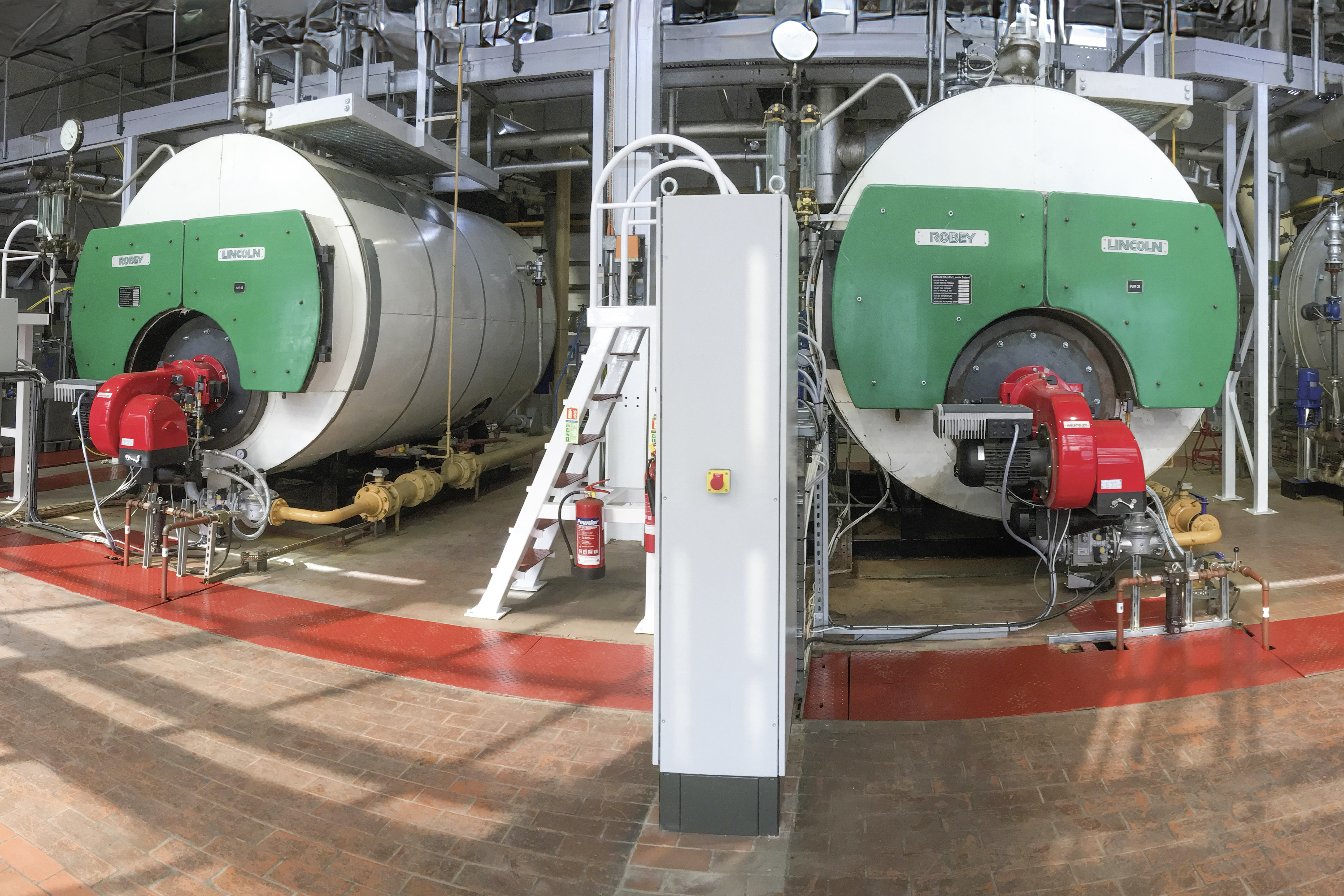 Въз основа на изискванията на здравните органи Weishaupt достави и пусна в експлоатация три модулиращи комбинирани горелки monarch® WM-GL 30 с технология multiflam® за ниски емисии. Всяка от трите горелки е оборудвана с честотно регулиране, което намалява консумацията на електроенергия и осигурява по-ниски нива на шум при по-ниска мощност на горелките. Освен това горелките разполагат с възможност за регулиране на кислорода, което подобрява ефективността на горене на котлите и пести енергия чрез непрекъснато измерване на остатъчния кислород в димните газове. Контролният шкаф на Weishaupt, служещ за управление на котлите, допълнително намаля разхода на гориво.